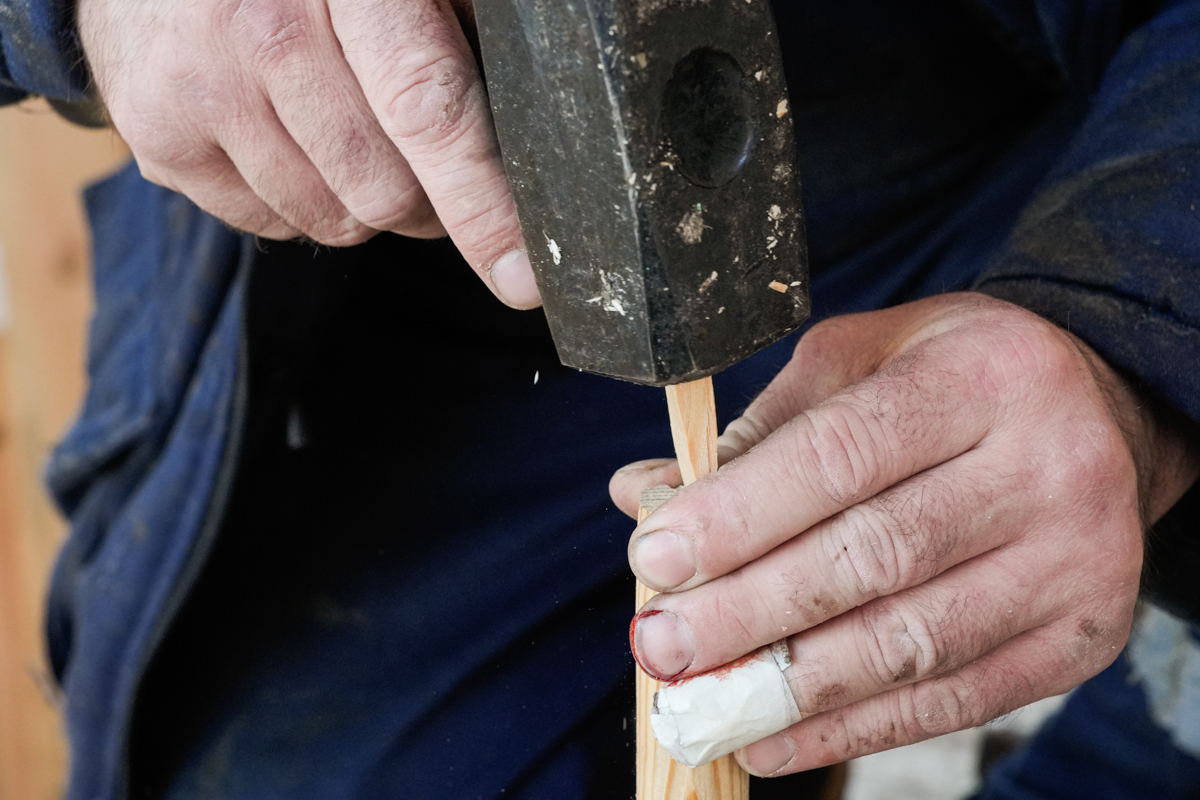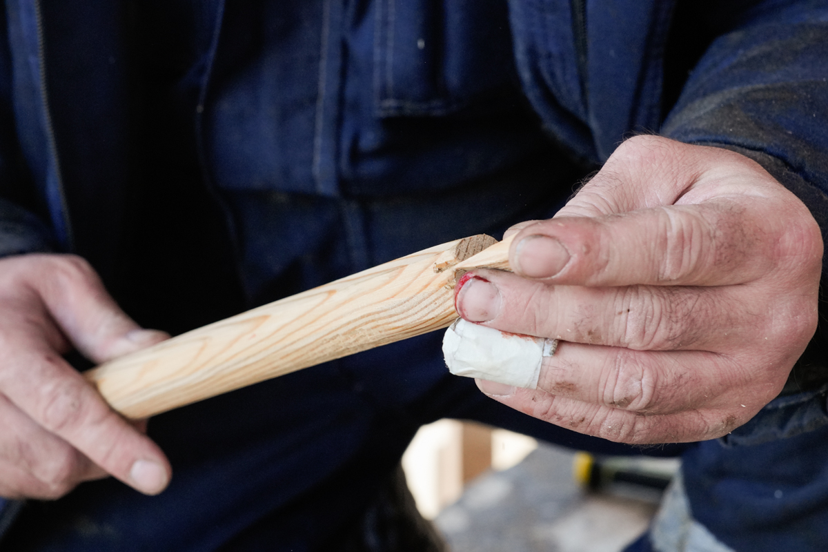 Нагеля Артём делает не на токарном станке, а вручную, потому что ему так удобнее и быстрее. Пять минут, два пореза — и готово.