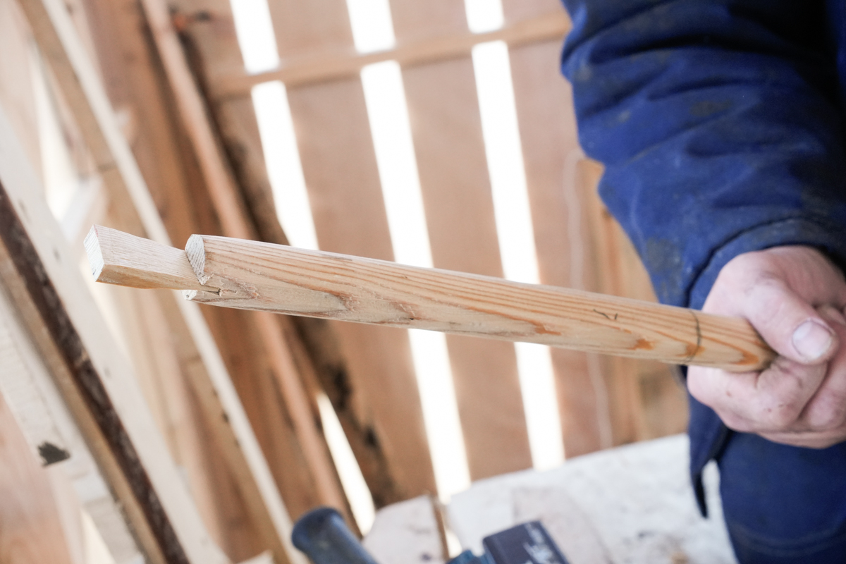 Миша Белайчук делает клинья для вицы.