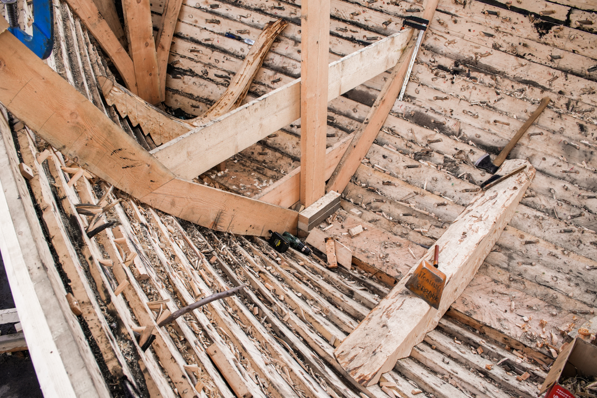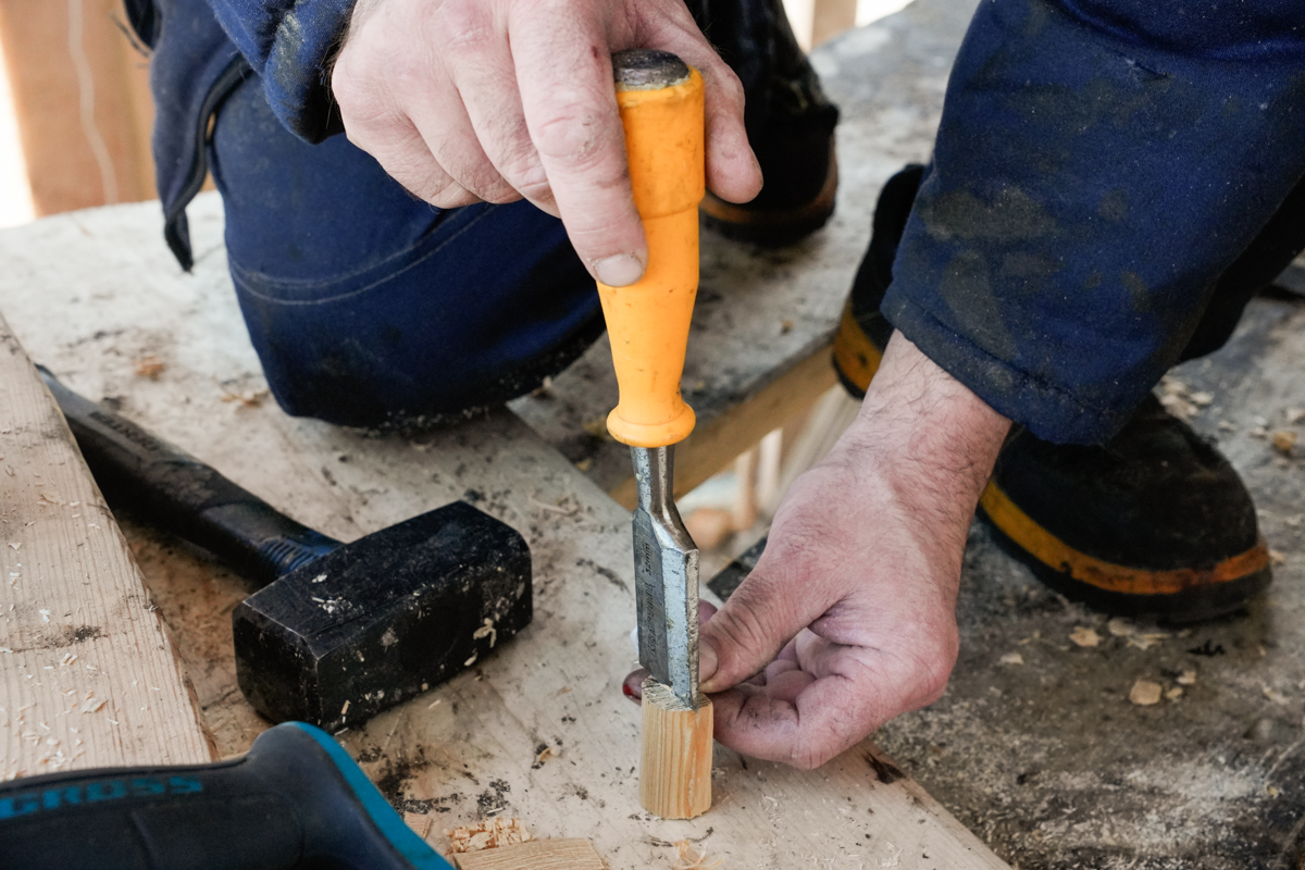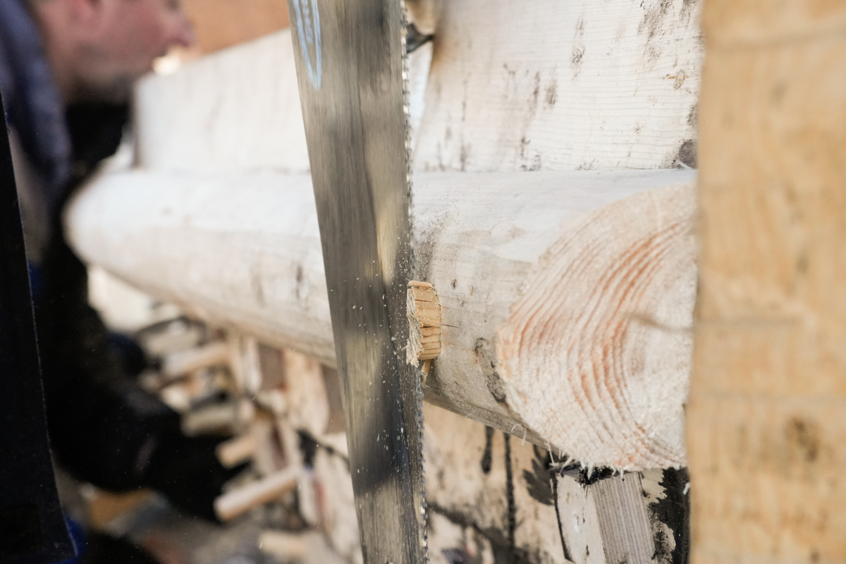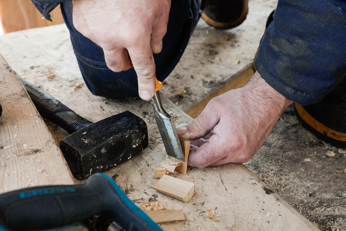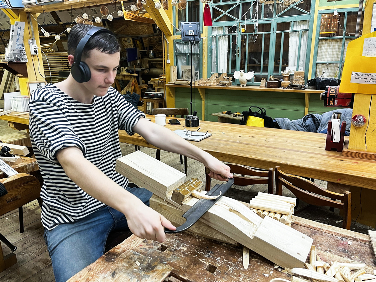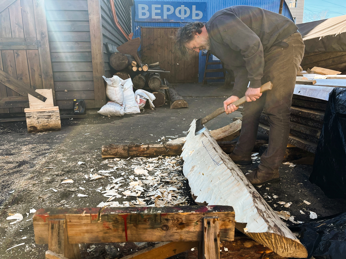 Женя вытёсывает флор и старается делать это гладко, без затёсов.