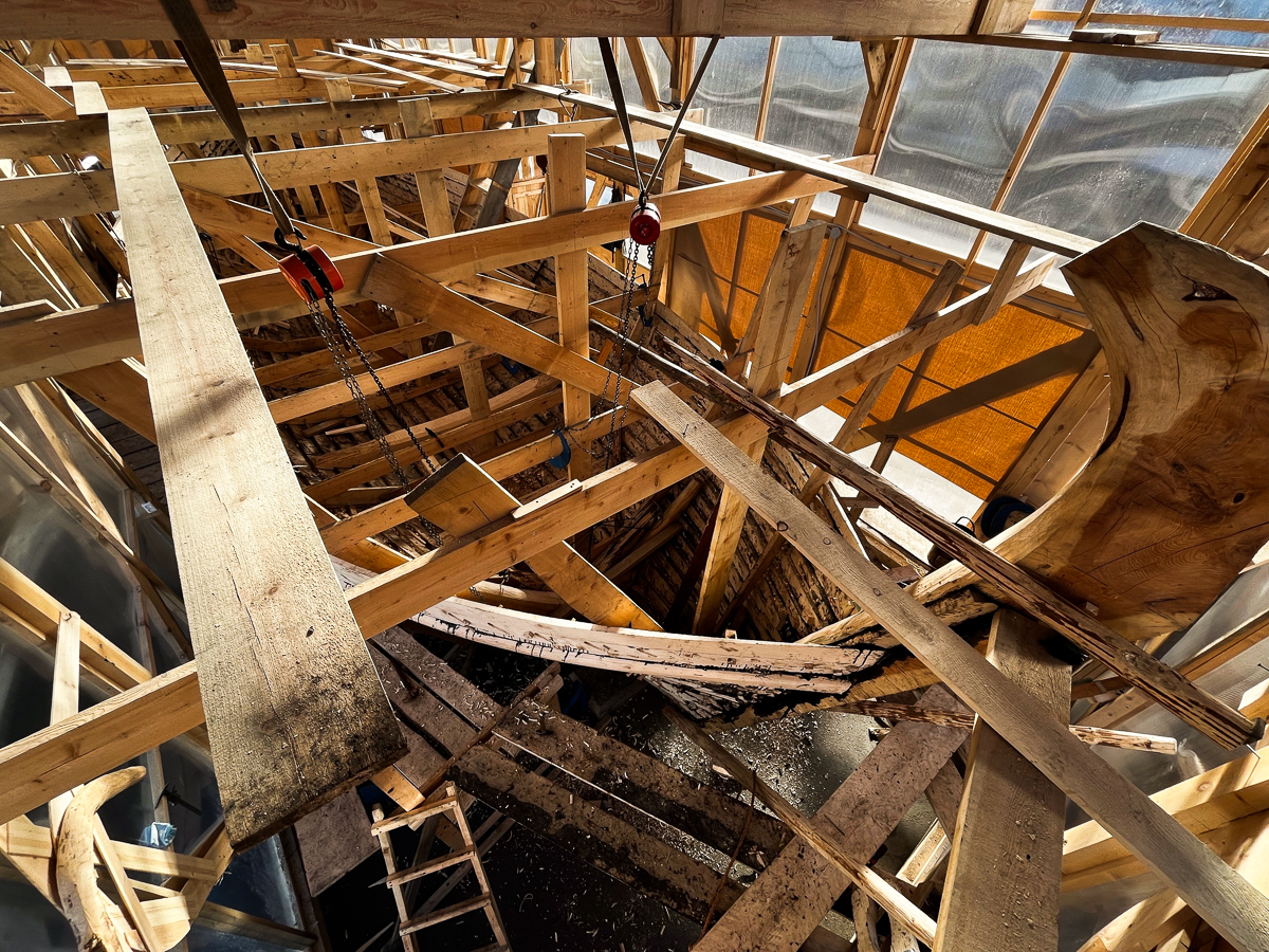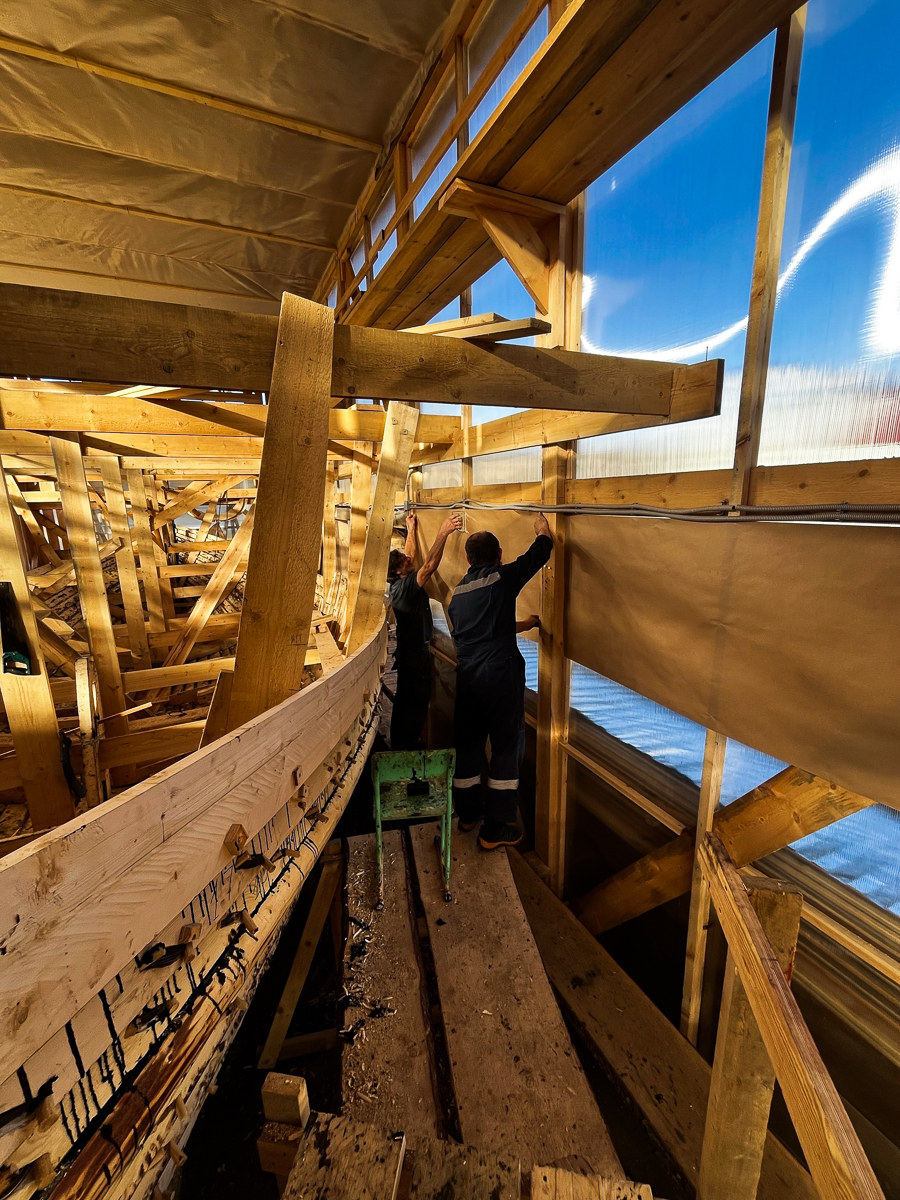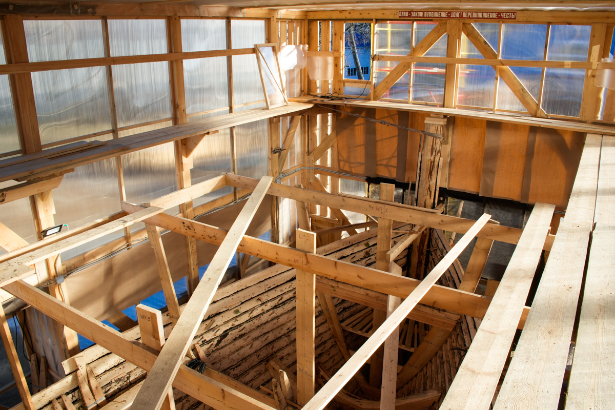 Коч продолжает расти, на днях нужно будет поднять леса внутри ангара ещё на полметра.
