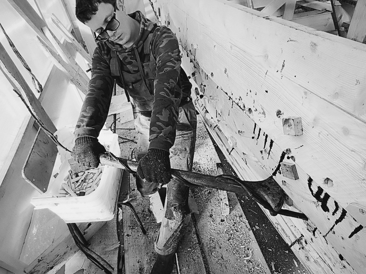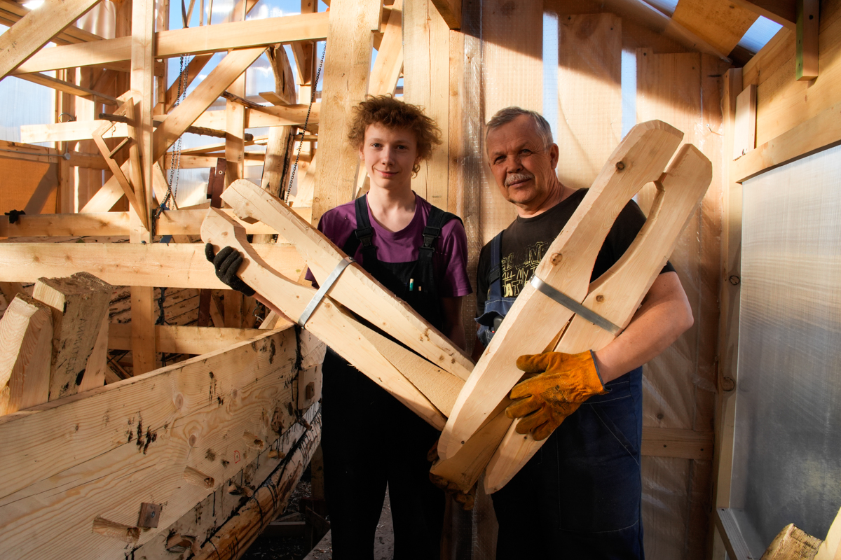 Артём выпилил две носовые доски восемнадцатого набоя. Вадим перешёл ко второй заготовке привальника, первую он доделал ещё вчера