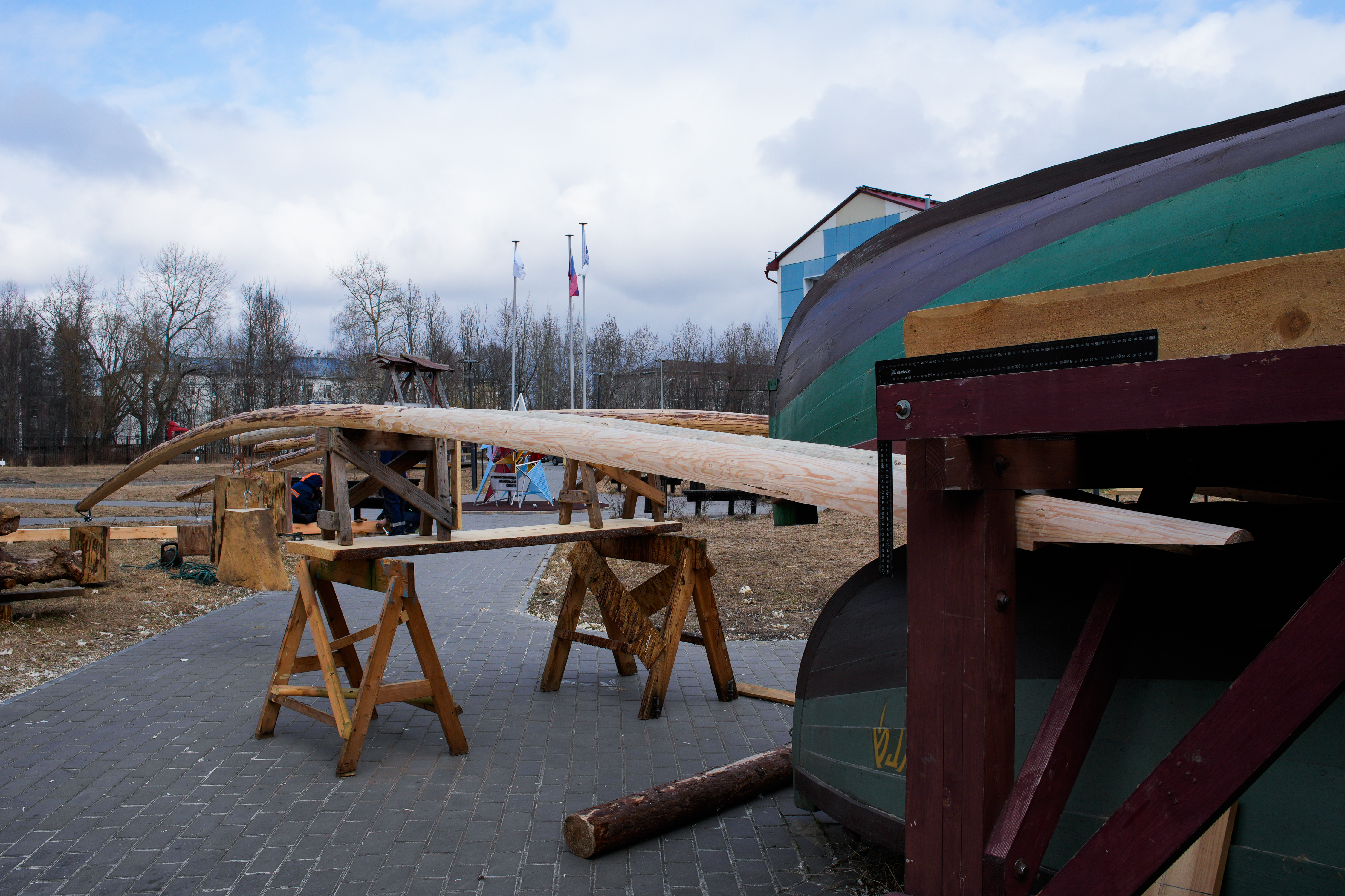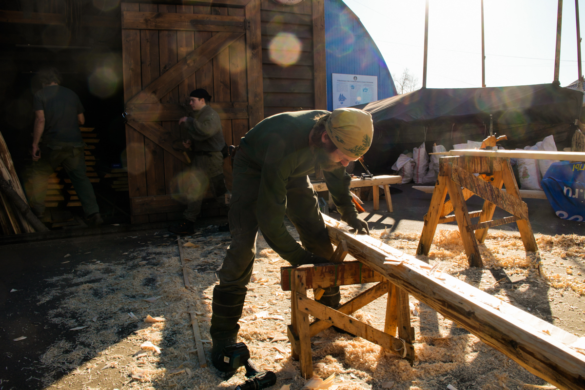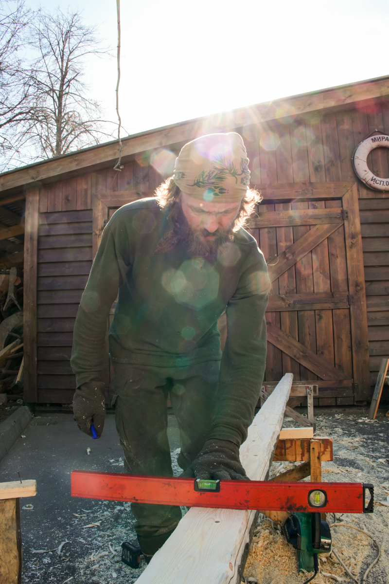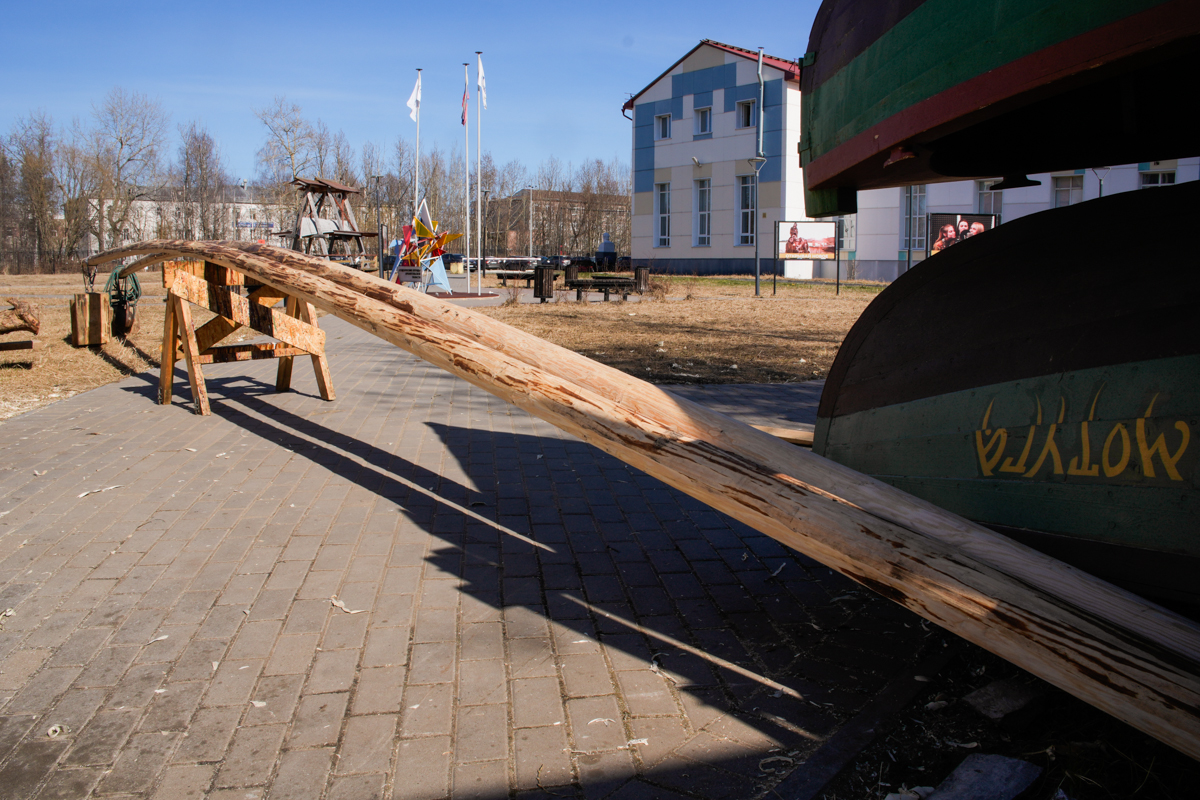 Весна в этом году ранняя и долгая. Снег растаял и высох, но по ночам всё ещё минус, а днем температура не бывает выше 10 градусов. Нам это на руку. Я бы ещё дождей добавил, чтобы растянуть время высыхания дерева.