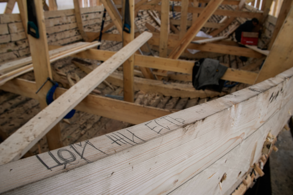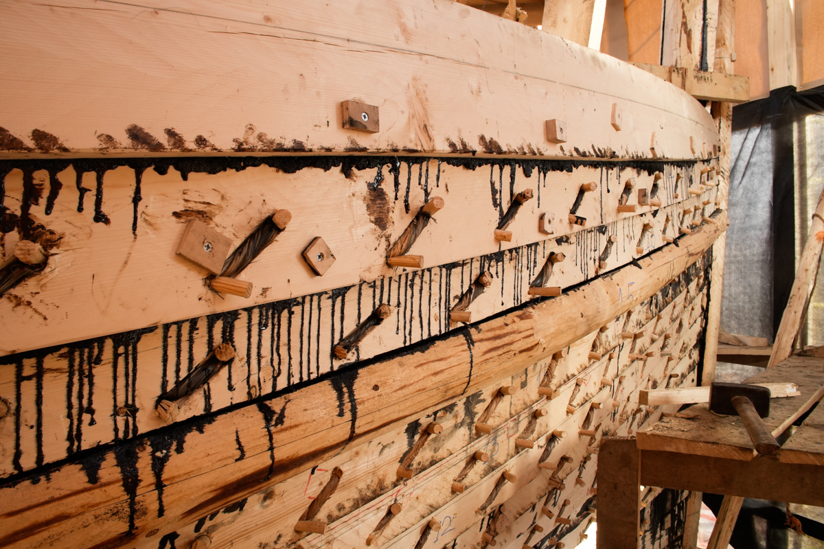 Сегодня поставили левую кормовую доску того же восемнадцатого набоя.