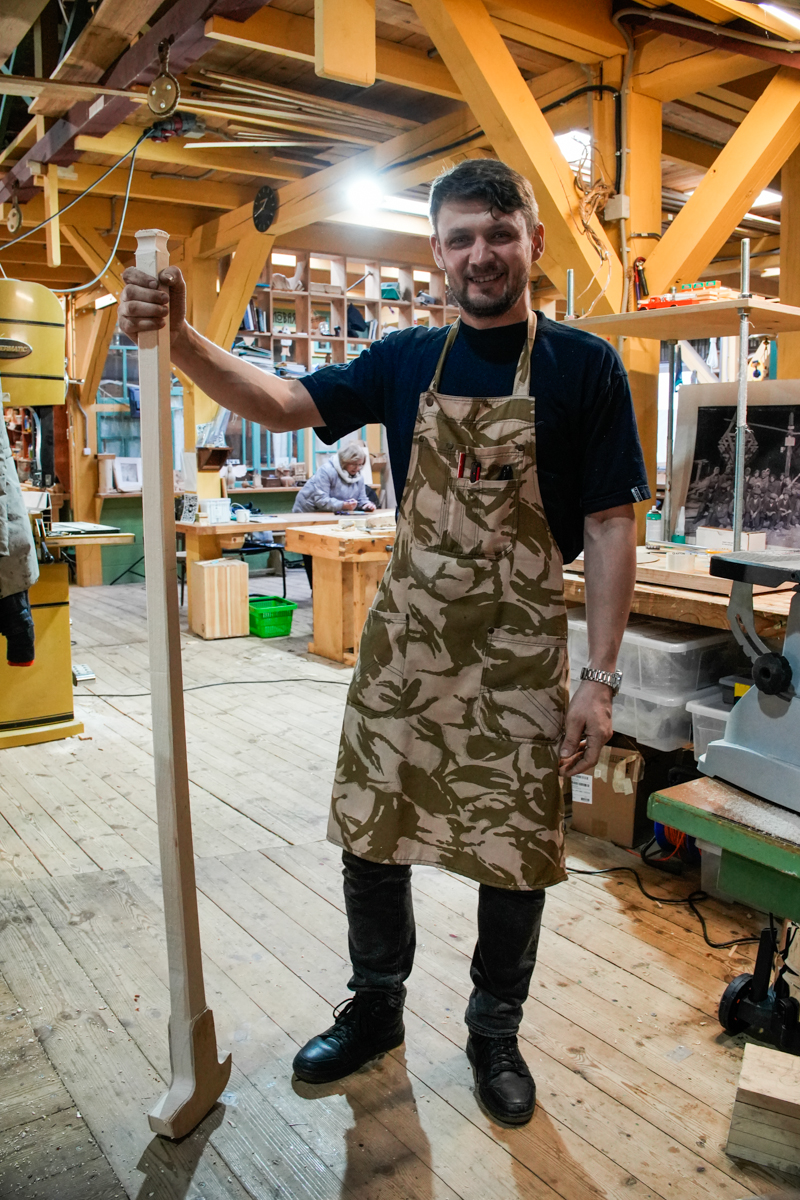 Макс (красавчик) научился строгать доски. Так он сам говорит (ну, кроме «красавчика», это уже мы сами добавили). Вообще-то, Максим по профессии инженер-строитель и занимается большими железобетонными стройками в обеих столицах, но вот, решил глотнуть свежего воздуха с запахом стружки и теперь с превеликим энтузиазмом осваивает столярное дело.